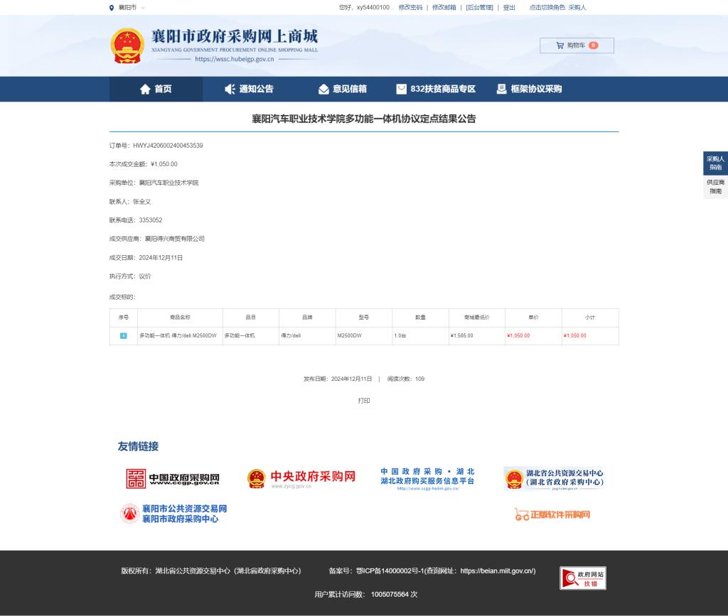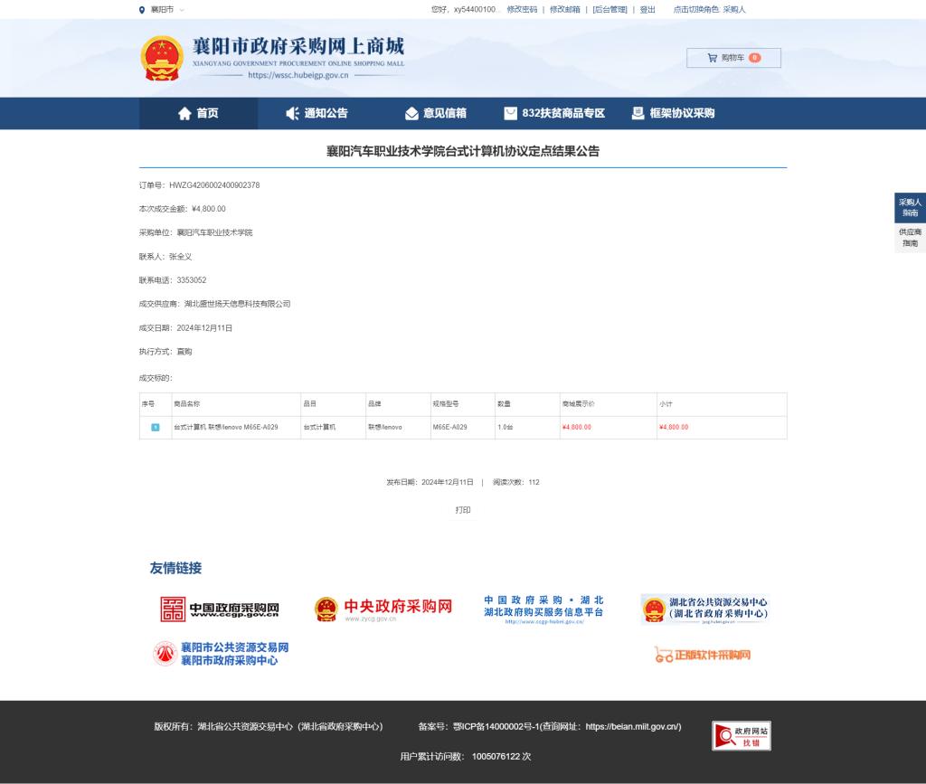 襄阳汽院信息化办公设备采购协议定点结果公告