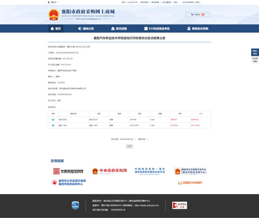 襄阳汽院办公设备采购3-2(电脑)协议定点结果公告