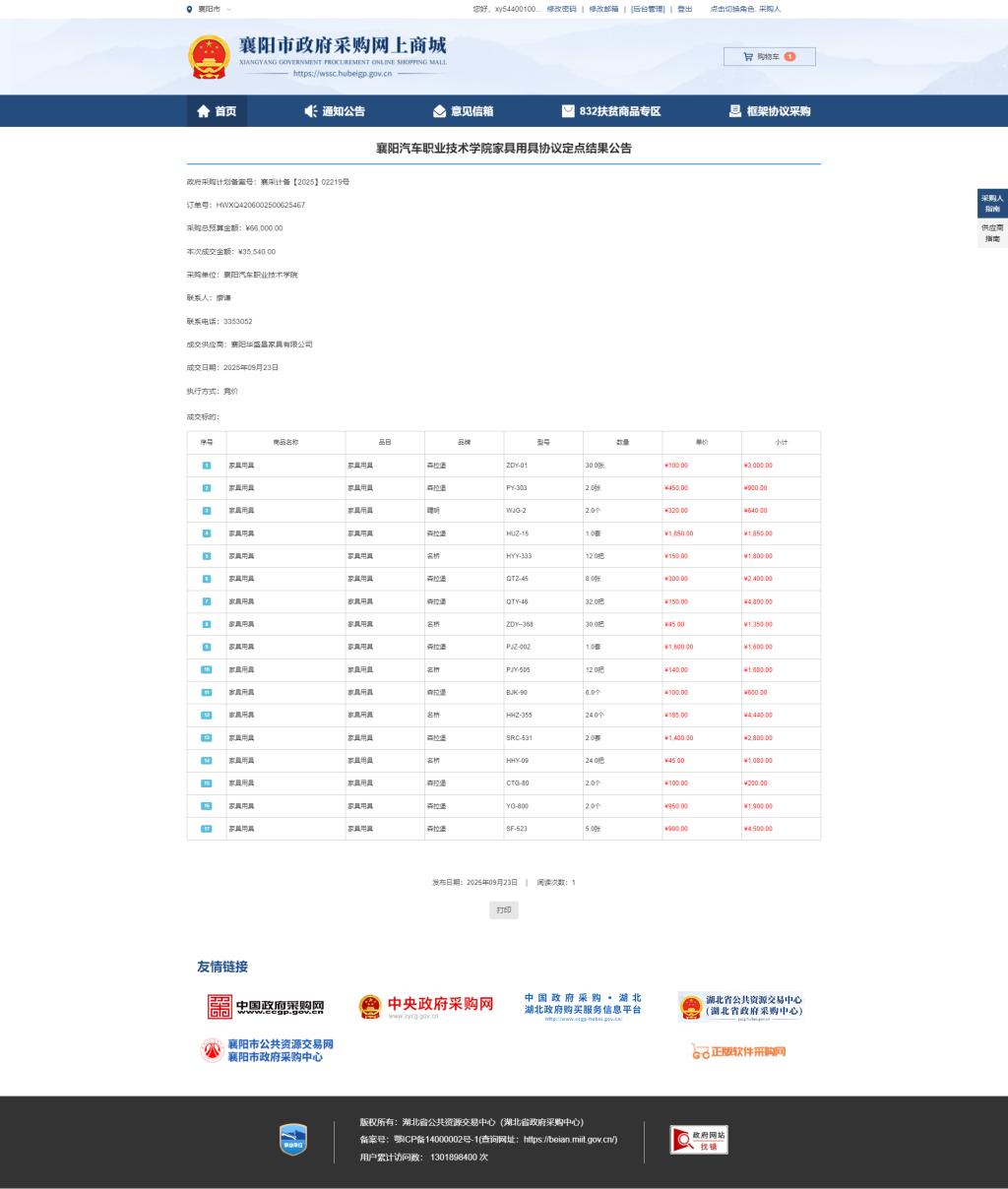 襄阳汽院办公设备采购3-3(家具)协议定点结果公告